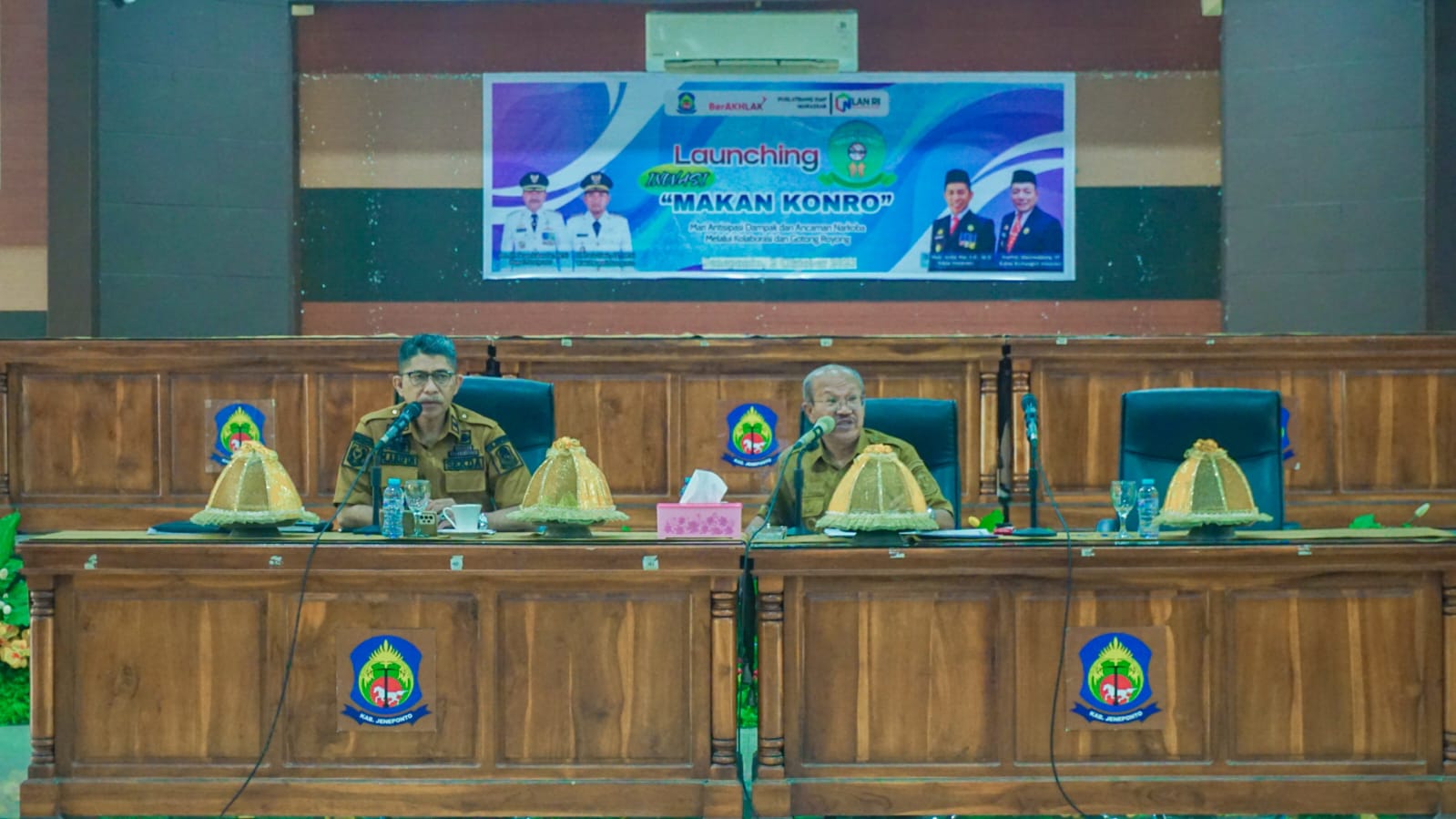 SATYA BHAYANGKARA JENEPONTO — Bupati Jeneponto H. Iksan Iskandar memberi apresiasi pada Launcing Inovasi “MAKAN KONRO” Mari Antisipasi Dampak dan Ancaman Narkoba melalui Kolaborasi dan Gotong Royong, Senin (02/10/2023).