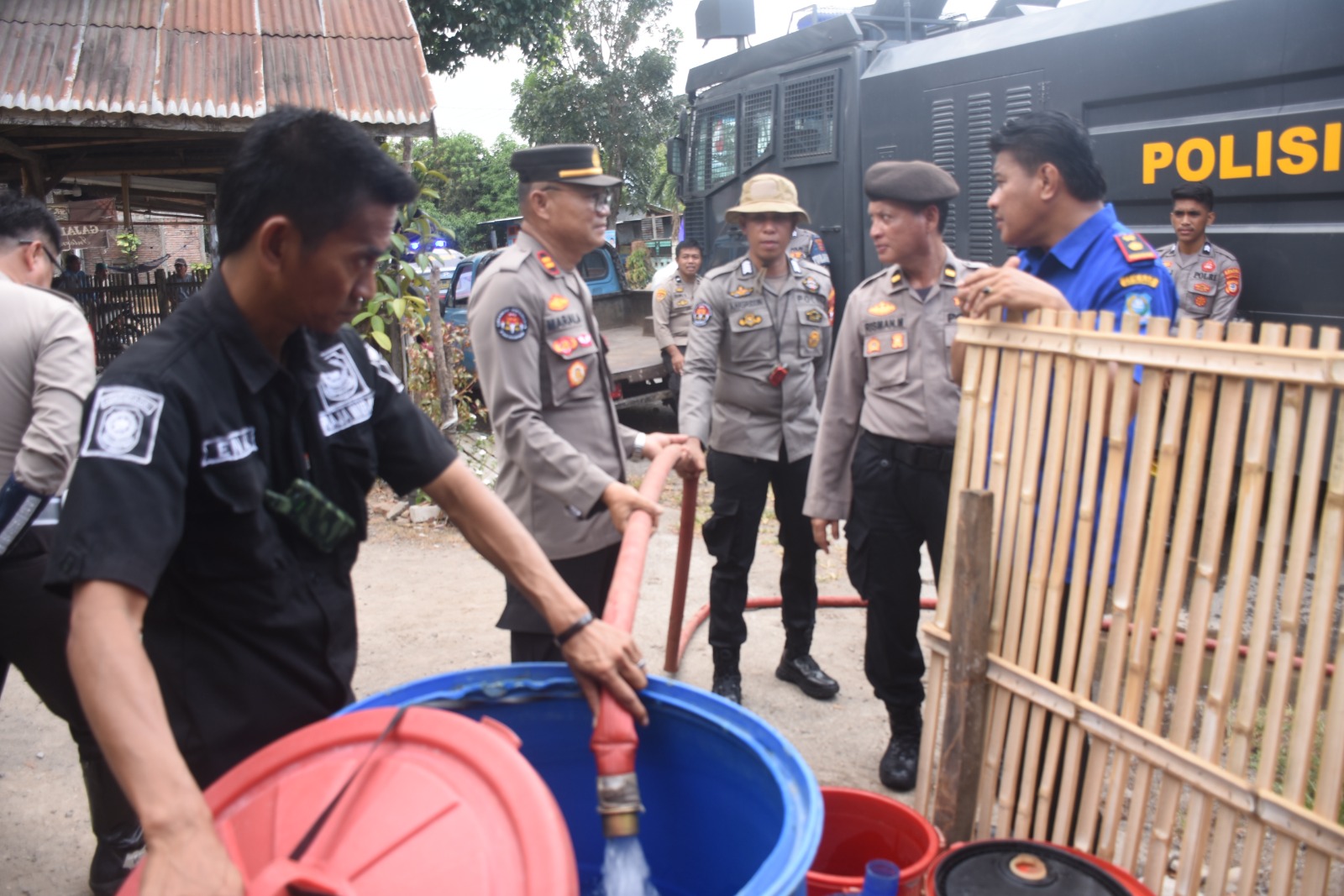 “Semoga dengan penyaluran bantuan air bersih ini dapat membantu mengurangi beban masyarakat yang sedang dalam kesulitan air bersih karena kemarau panjang.” Harap IPTU H.Marala.