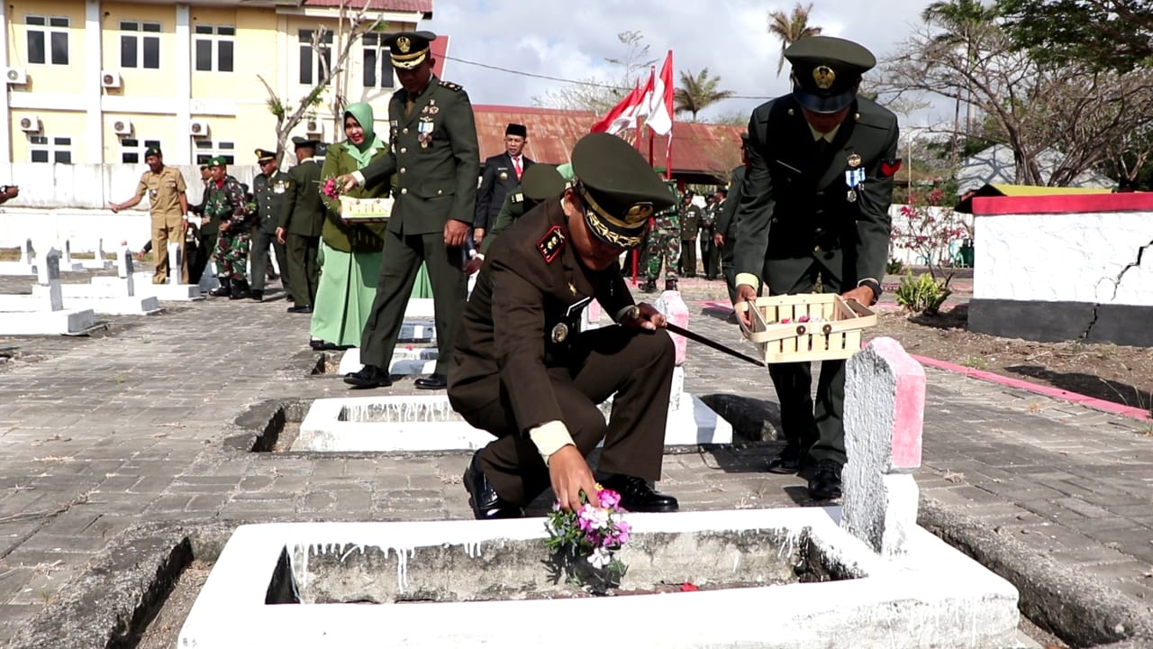 Ziarah dan tabur bunga dalam rangka HUT ke-78 tahun 2023, dipimpin oleh Komandan Kodim 1425 Jeneponto Letkol Inf Muhammad Amin, S.IP., Komandan Upacara Pasi Ter Kodim 1425 Jeneponto Kapten Inf Sayuti Perwira Upacara Pasi Log Kodim 1425 Jeneponto, Kapten Cpl Sahabuddin.