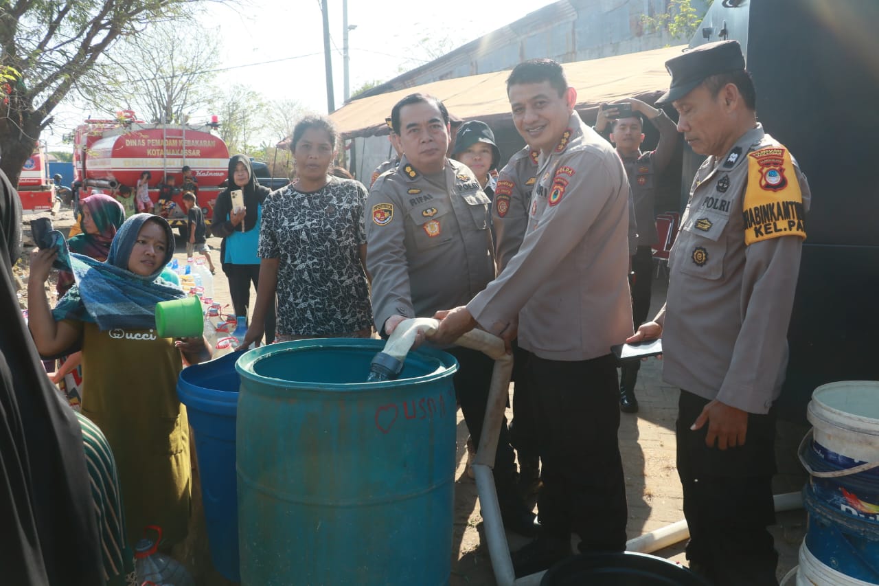 Sebanyak 2 Armada Mobil Damkar, 1unit Mobil PDAM, 1 Mobil Pengangkut Air Kecamatan dan 1 Unit Mobil Water Canon Ditsabhara Polda Sulsel dikerahkan dalam mendistribusikan air bersih sebanyak 32.000 Kubik pada sejumlah lokasi di kota Makassar. yakni di Kelurahan Pai, Komplek BPS, dan Perumahan Telkomas