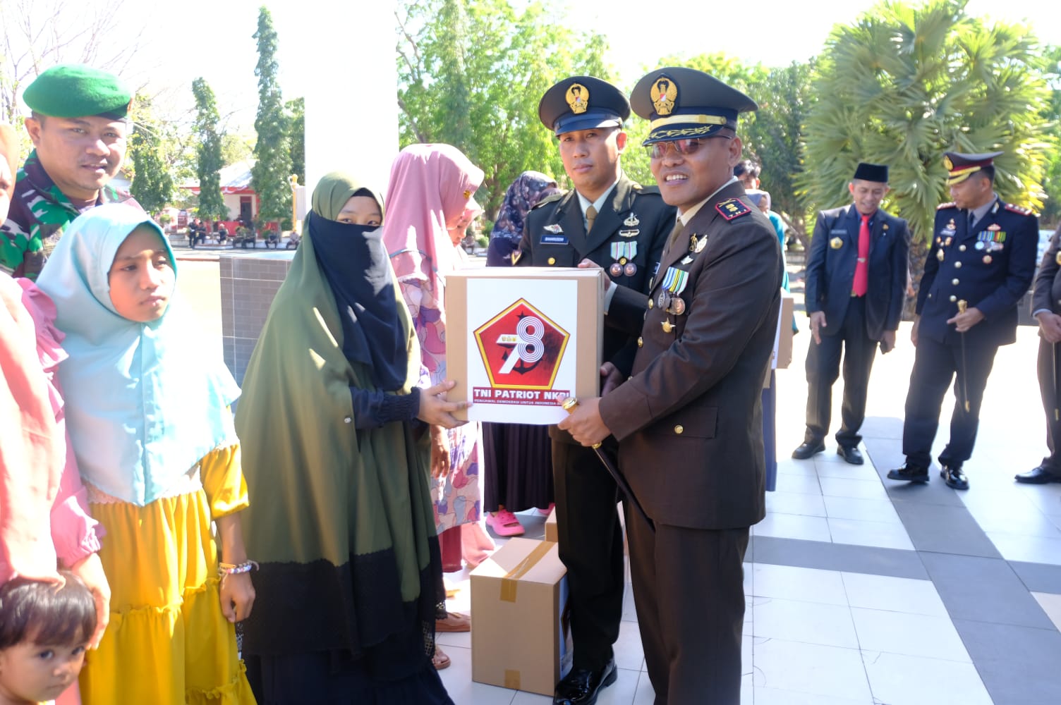 Pembagian paket sembako tersebut digelar usai pelaksanaan upacara peringatan HUT Ke 78 TNI tahun 2023, yang di serahkan langsung oleh Dandim 1425 Jeneponto Letkol Inf Muhammad Amin, S.IP., bersama Forkopimda Jeneponto, di Halaman Kantor Bupati Jeneponto, jl. Lanto Dg Pasewang Kelurahan Empoang Kecamatan Binamu Kabupaten Jeneponto, Sulsel. Kamis, 05/10/2023.