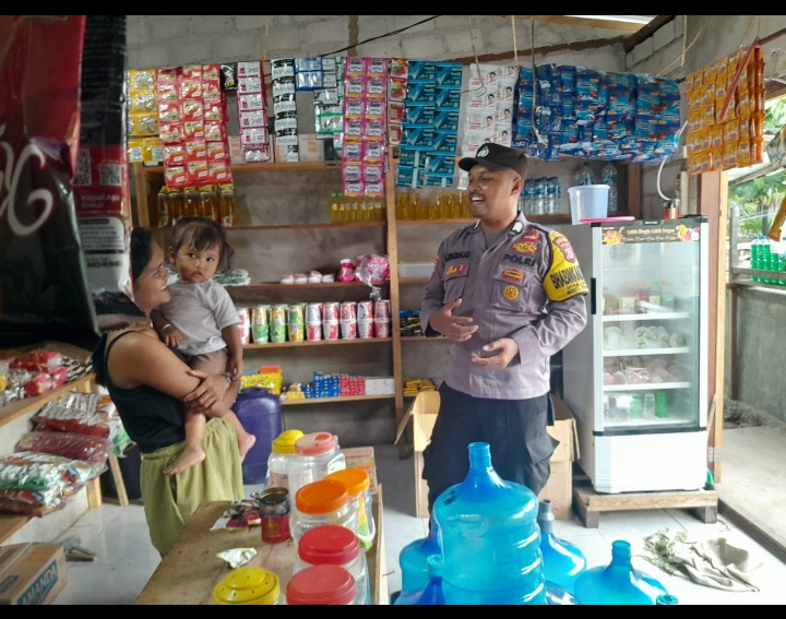 Kepada Pemilik Kios, Bhabinkamtibmas menjelaskan bahwa sebagai seorang Bhabinkamtibmas yang merupakan ujung tombak penjaga situasi Kamtibmas di Desa binaan, Ia harus terus berperan aktif. Oleh karena itu untuk menjaga situasi tetap kondusif, salah satu usaha yang dilakukan Bhabinkamtibmas yaitu mengecek dan menghimbau kepada masyarakat para pemilik Kios agar tidak menjual Miras serta makanan dan minuman Kadaluarsa yang dapat membahayakan para konsumennya.