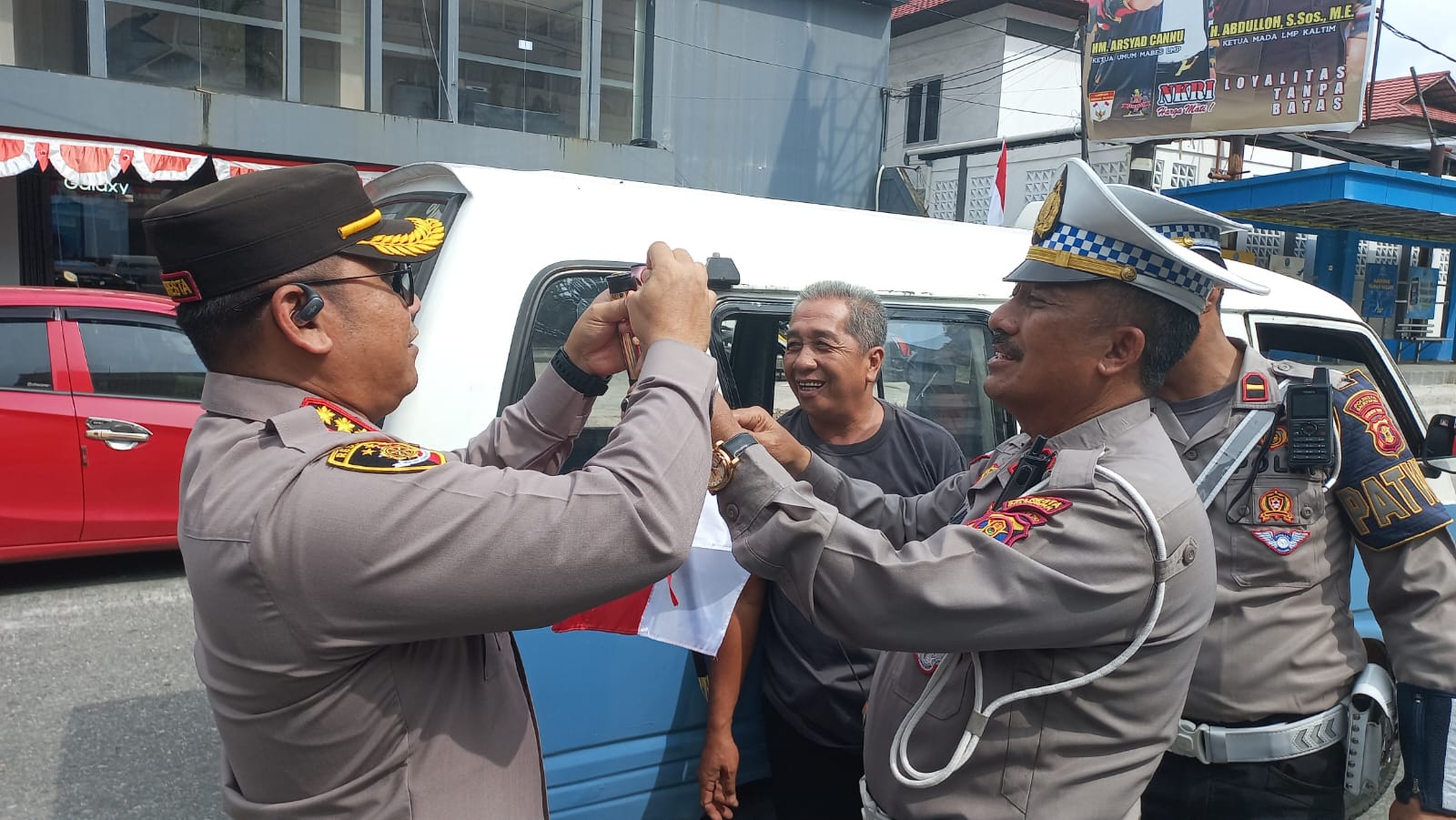 SATYA BHAYANGKARA|BALIKPAPAN – Dalam rangka menyambut Hari Kemerdekaan Republik Indonesia ke-80 “17 Agustus 2025” Kemerdekaan Republik Indonesia, Kapolresta Balikpapan Kombes Pol. Anton Firmanto, S.H., S.I.K., M.Si., bersama PJU Polresta Balikpapan melakukan aksi pembagian Bendera Merah Putih kepada para pengguna jalan di Wilayah kota balikpapan pada Kamis (7/8/2025).