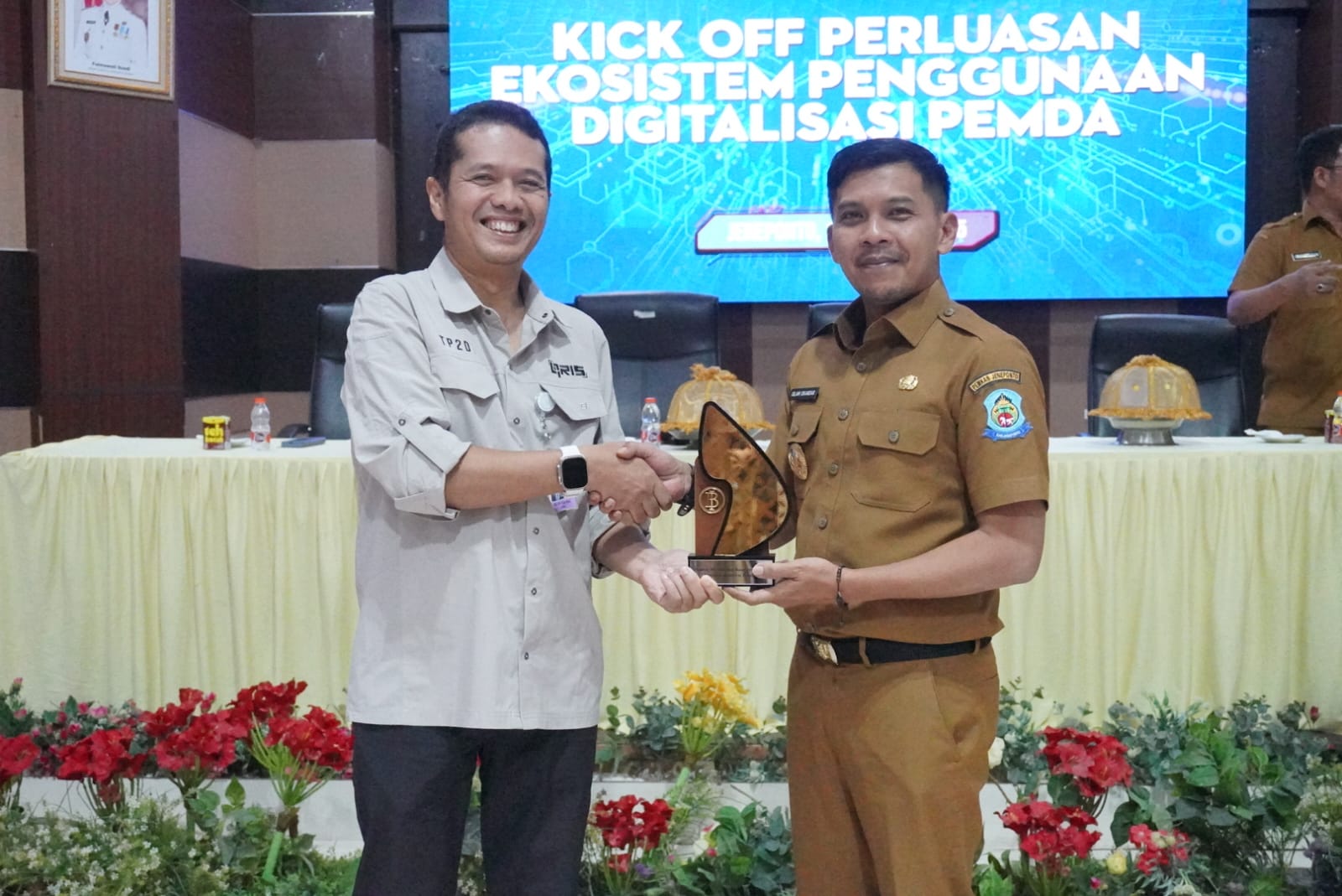 Turut hadir Sekretaris Daerah Jeneponto, Kepala Bappeda, Kepala Dinas Perdagangan, Kepala Satuan Polisi Pamong Praja, Pimpinan Cabang Bank Sulselbar Jeneponto, para pimpinan Organisasi Perangkat Daerah (OPD), serta kepala dinas terkait lainnya. Pertemuan ini menjadi ajang koordinasi strategis untuk memperkuat langkah-langkah percepatan transformasi digital di lingkungan pemerintah daerah.