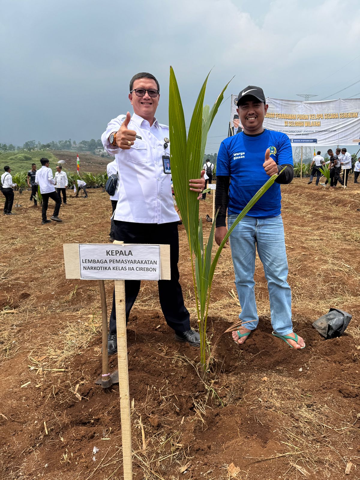 SATYA BHAYANGKARA | KABUPATEN BANDUNG, – 09 September 2025. Plt Kepala Lembaga Pemasyarakatan (Kalapas) Narkotika Kelas IIA Cirebon, Sumarwoto Hendra Budiman, menghadiri secara langsung kegiatan penanaman bibit pohon kelapa yang diselenggarakan secara serentak oleh Kantor Wilayah Direktorat Jenderal Pemasyarakatan (Kanwil Ditjenpas) Jawa Barat.