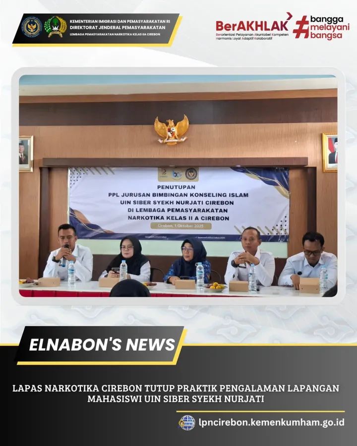 SATYA BHAYANGKARA | CIREBON, – Lembaga Pemasyarakatan Narkotika Kelas IIA Cirebon secara resmi menutup kegiatan Praktik Pengalaman Lapangan (PPL) bagi mahasiswi UIN Siber Syekh Nurjati Cirebon. Acara penutupan berlangsung pada Rabu, 1 Oktober 2025, di Auditorium Lapas.