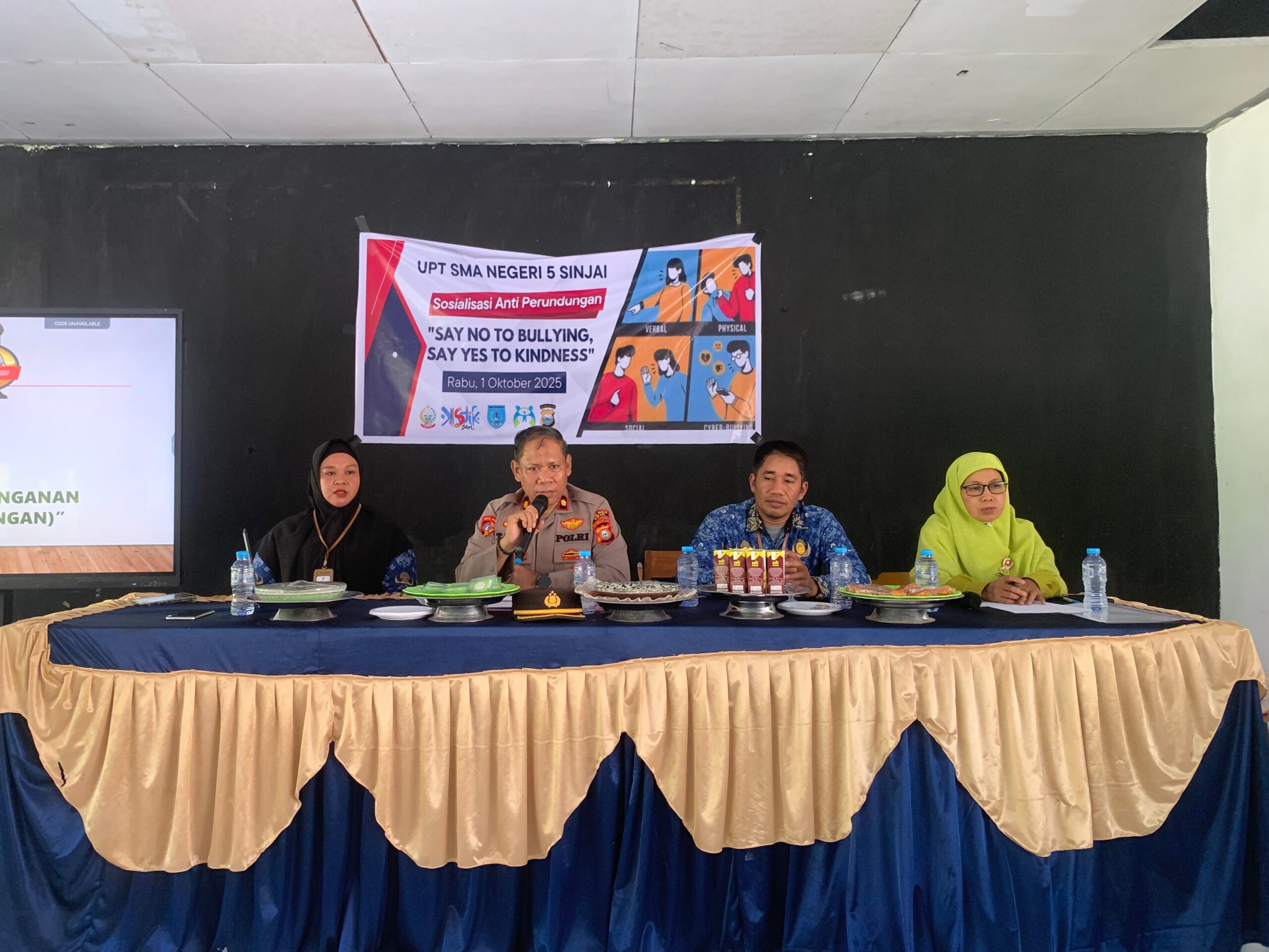 SATYA BHAYANGKARA SINJAI —Wakapolres Sinjai Kompol Tamar, S.Sos melaksanakan kegiatan psikoedukasi tentang dampak dan pencegahan bullying di kalangan pelajar di SMAN 5 Sinjai, pada Rabu (01/10/2025).