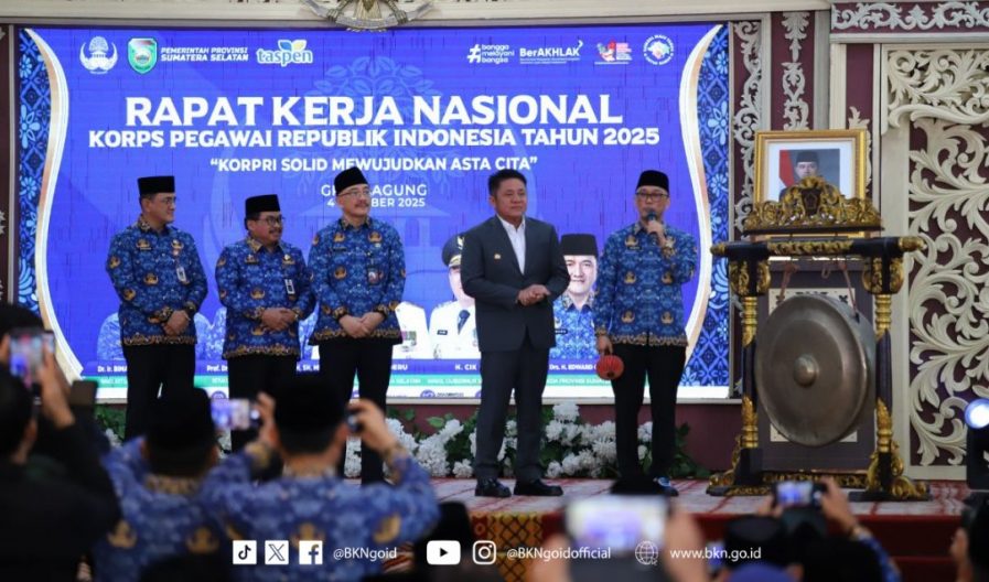“Oleh karena itu, Rakernas Korpri kali ini diarahkan untuk merumuskan langkah konkret membangun birokrasi yang sehat dan berkelanjutan,” ungkapnya melalui Rakernas Korpri bertajuk Korpri Solid Mewujudkan Asta Cita yang digelar di Griya Agung Palembang, Sabtu (04/10/2025). Rakernas Korpri ini sendiri menurutnya menjadi momentum penting untuk memperkuat soliditas dan profesionalitas ASN, serta karakter birokrasi yang sehat.
