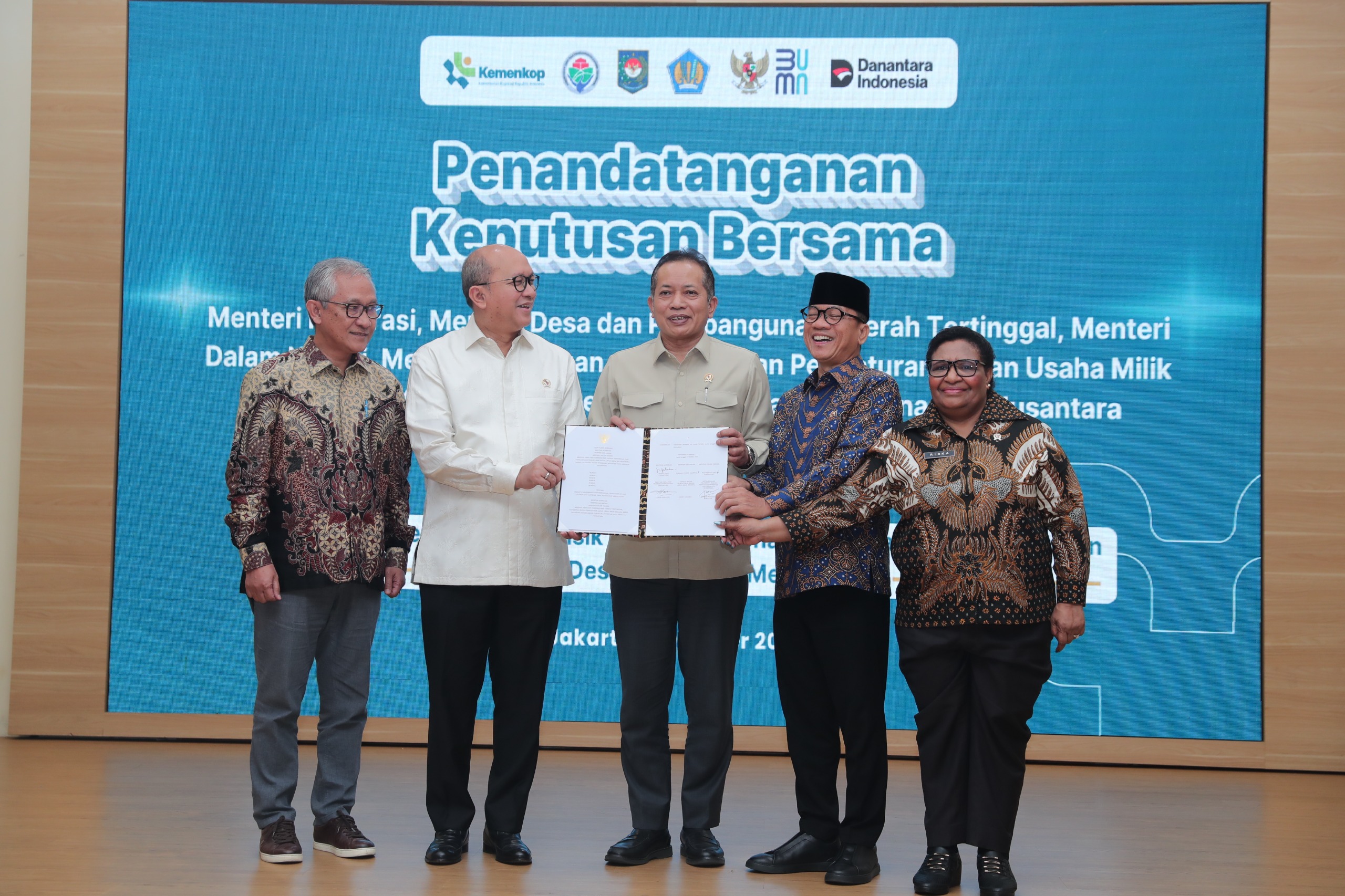 Selain Mendes, keputusan bersama tersebut ditandatangani Menteri Koperasi, Menteri Dalam Negeri, Menteri Keuangan, Kepala Badan Pengaturan Badan Usaha Milik Negara, dan Kepala Badan Pengelola Investasi Daya Anagata Nusantara.