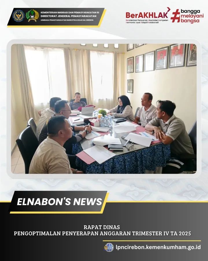 SATYA BHAYANGKARA | JAKARTA, –Dalam rangka meningkatkan akuntabilitas dan efisiensi pengelolaan keuangan negara, Kepala Lembaga Pemasyarakatan Kelas IIA Cirebon beserta jajaran pimpinan menggelar Rapat Dinas Pengoptimalan Penyerapan Anggaran Trimester IV Tahun Anggaran 2025.