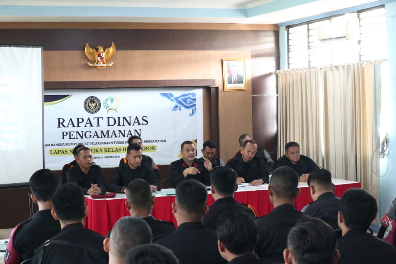 SATYA BHAYANGKARA | CIREBON, –Kegiatan yang dipimpin secara langsung oleh Bapak Kelapa Lapas Narkotika Cirebon ini turut dihadiri oleh seluruh jajaran pimpinan, mulai dari Ka KPLP, Kasi Adm. Kamtib, Kasubsi Keamanan, Kasubsi Portatib, Staff Kamtib, Staff KPLP, serta seluruh personel Regu Pengamanan.