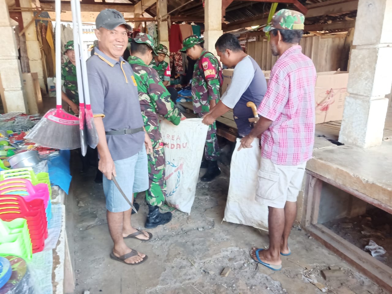 Dalam sambutannya, Letda Arm Amir Hamzah menyampaikan bahwa kegiatan kerja bakti ini merupakan bentuk nyata kepedulian TNI terhadap kebersihan lingkungan, khususnya di fasilitas umum seperti pasar tradisional.