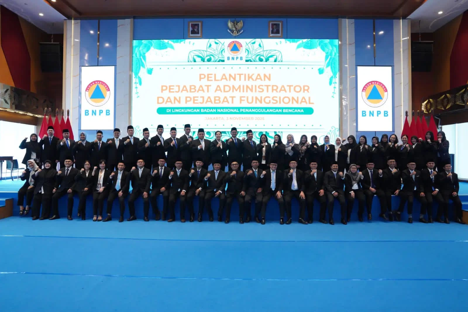 SATYA BHAYANGKARA | JAKARTA, – Senin, 03 November 2025. Sekretaris Utama Badan Nasional Penanggulangan Bencana (BNPB) Dr. Rustian, S.Si., Apt., M.Kes. melantik 59 pejabat administrasi setingkat Eselon III dan IV di lingkungan BNPB, untuk dialihkan jabatannya ke dalam jabatan fungsional. Kegiatan ini dilaksanakan di Aula Sutopo Purwo Nugroho, Gedung Graha BNPB, Jakarta pada Senin (3/11).