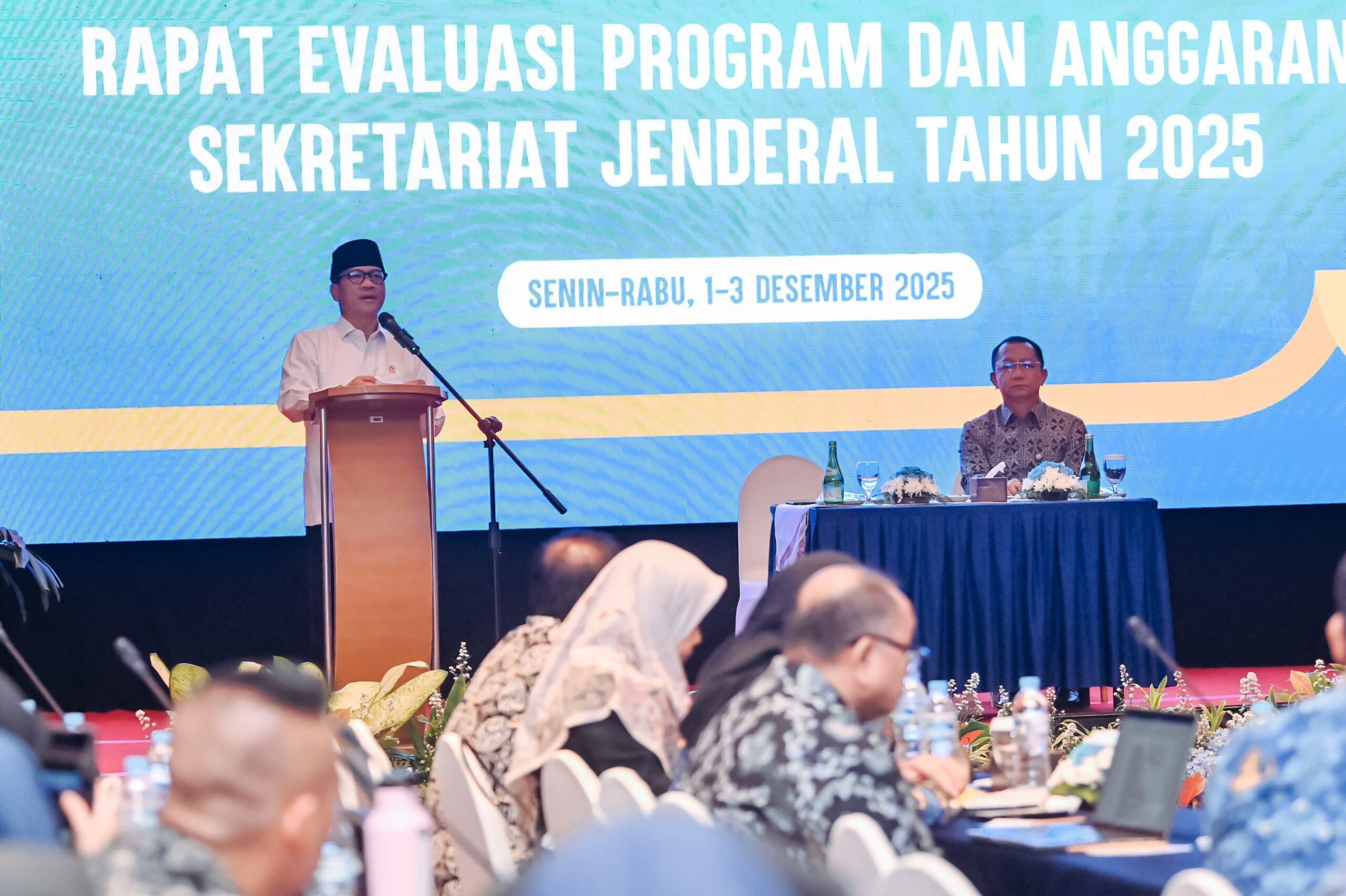 SATYA BHAYANGKARA | JAKARTA, – Menteri Desa dan Pembangunan Daerah Tertinggal (Mendes PDT) Yandri Susanto membuka Rapat Evaluasi Program dsn Anggaran Sekretariat Jenderal (Setjen) Tahun 2025 di Jakarta, Senin (1/12/2025).