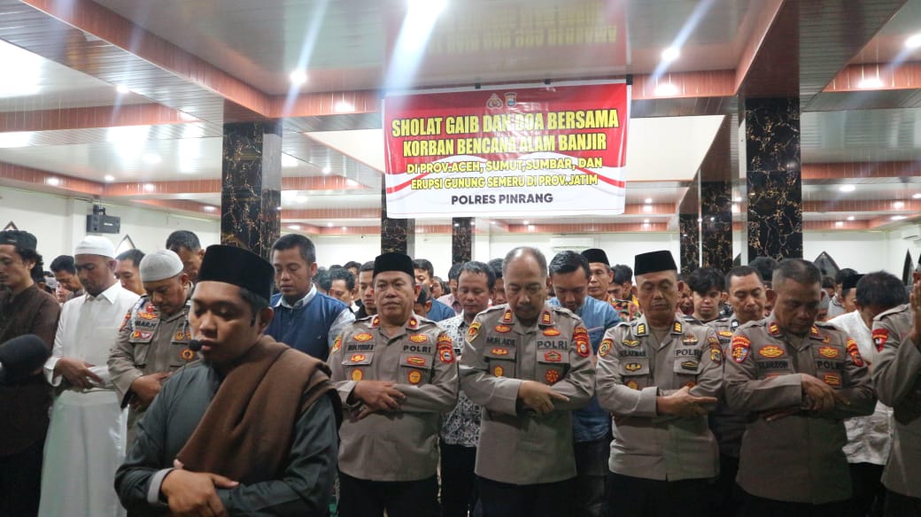 Sholat ghaib dipimpin oleh imam Masjid Nurul Khair dan diikuti oleh jajaran pejabat utama Polres Pinrang serta personel lainnya. Kegiatan ini menjadi wujud kepedulian Polres Pinrang terhadap para korban bencana alam di berbagai wilayah Indonesia.