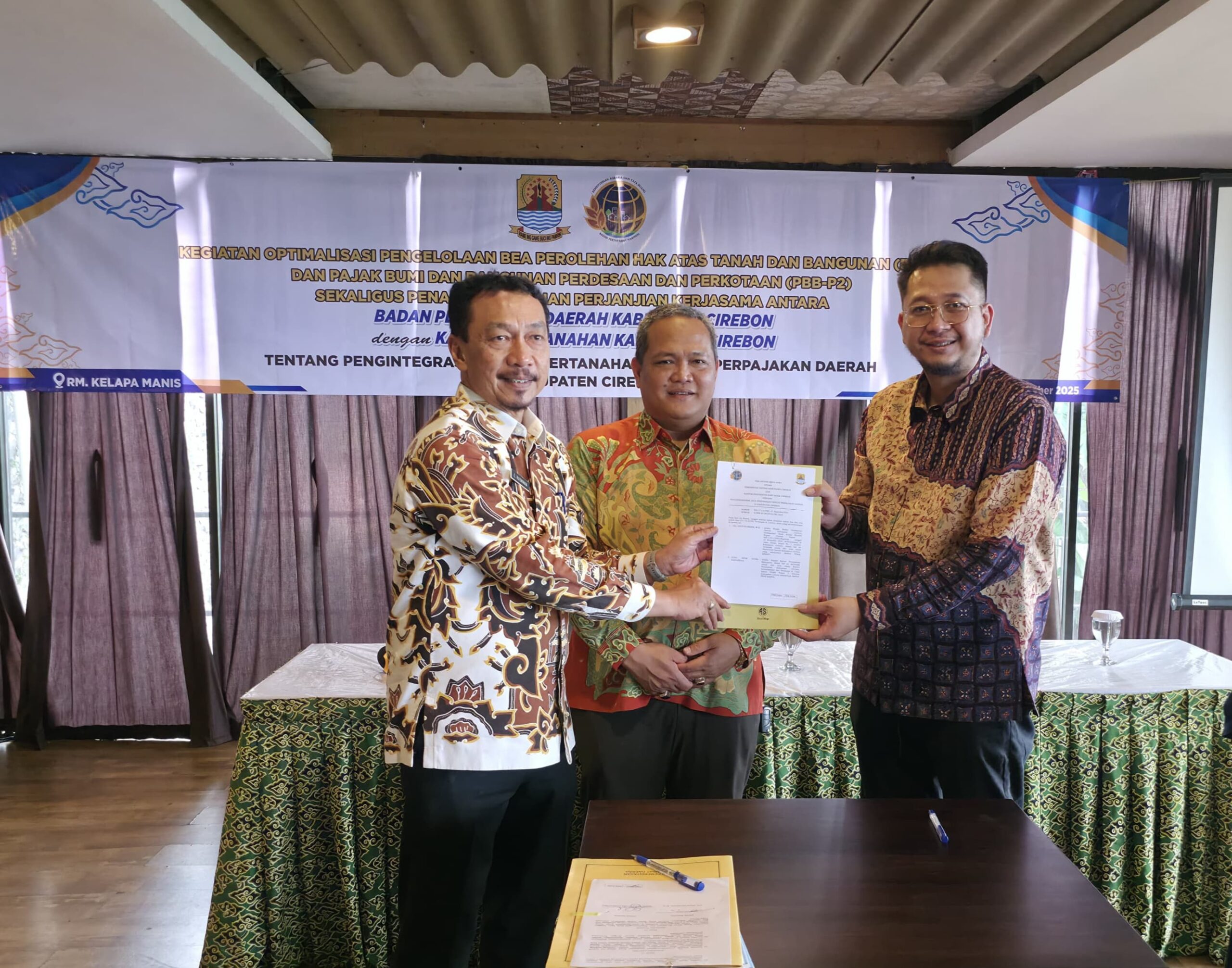 MoU tersebut ditandatangani langsung antara Kepala Badan Pendapatan Daerah Drs. Erus Rusmana, MSi dengan Kepala Kantor Pertanahan Kabupaten Cirebon Agha Setia Putra Ekasaptadi.