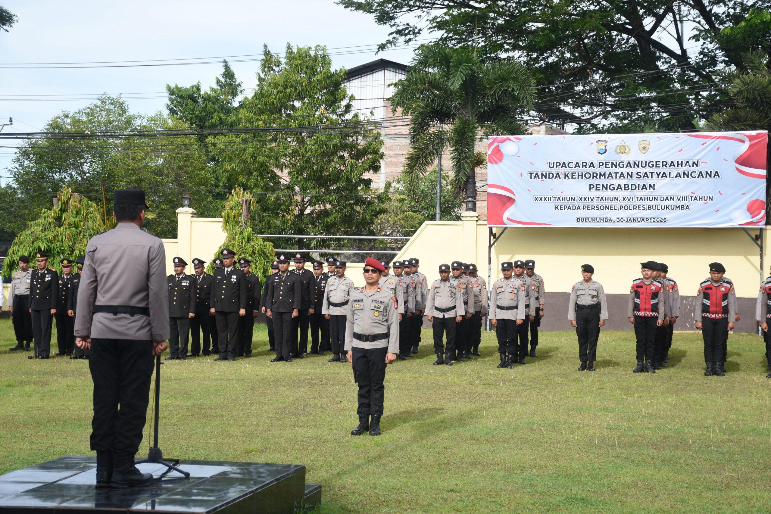 — Sebanyak 35 personel Polres Bulukumba menerima tanda kehormatan Satyalancana Pengabdian dalam sebuah upacara penganugerahan yang digelar di Lapangan Apel Polres Bulukumba, Jumat pagi (30/01/2026).