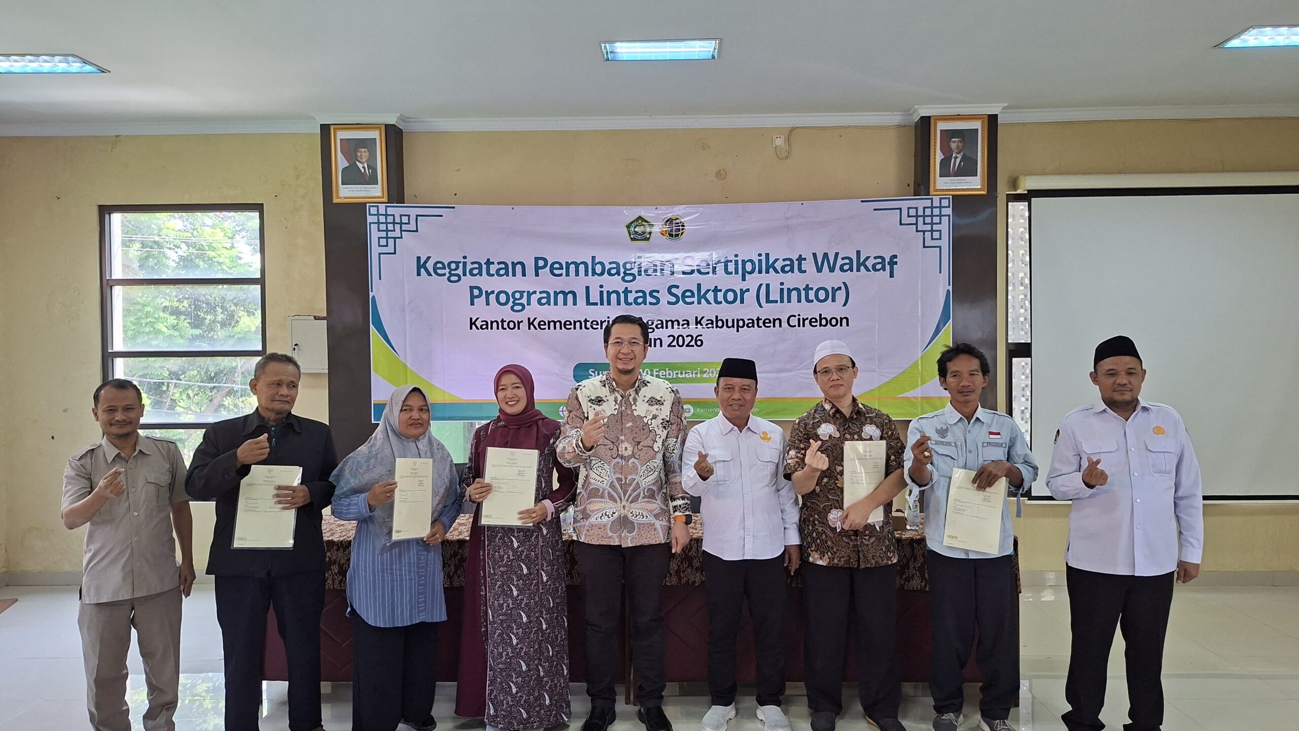 SATYA BHAYANGKARA | KABUPATEN CIREBON, – Badan pertanahan kabupaten Cirebon menyerahkan 75 sertifikat tanah wakaf di aula kantor kementerian Agama Kabupaten Cirebon, Selasa ( 10/02/2026 ) mulai pukul 08:00 wib.