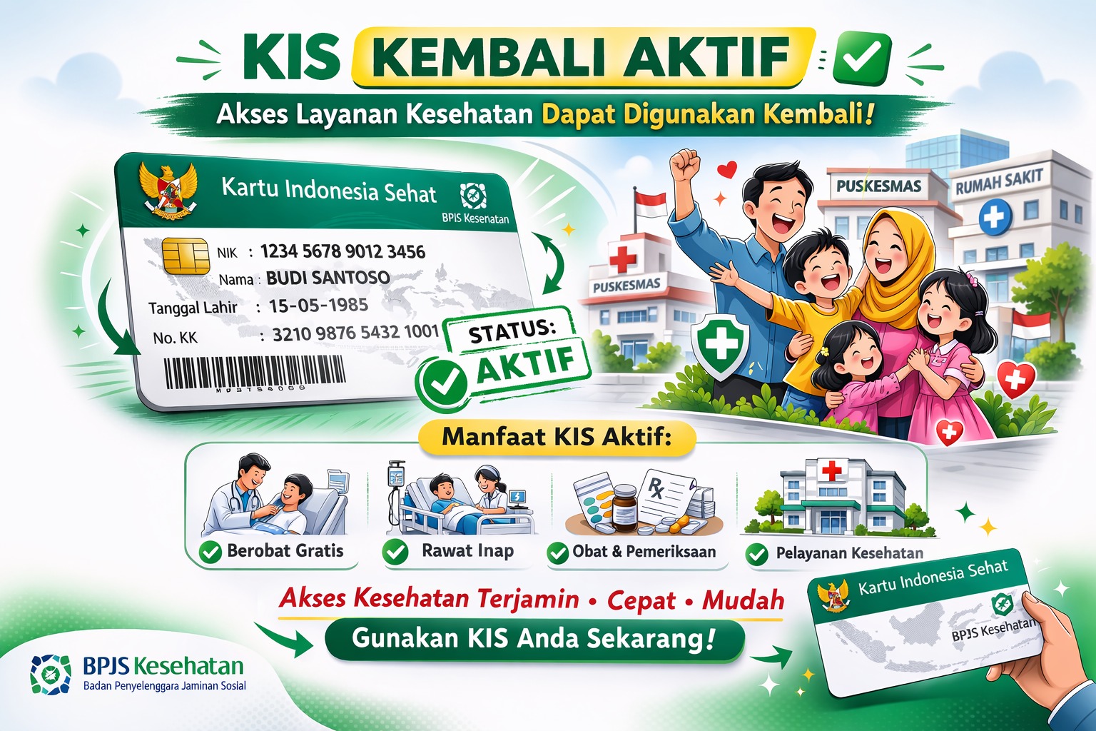— Pemerintah Pusat melalui Kementerian Sosial Republik Indonesia 24 Februari 2026. kembali mengaktifkan kepesertaan Penerima Bantuan Iuran Jaminan Kesehatan (PBI JK) yang sebelumnya nonaktif pada periode Januari 2026. Kebijakan tersebut tertuang dalam Keputusan Menteri Sosial RI Nomor 24/HUK/2026 tentang Penetapan Penerima Bantuan Iuran Jaminan Kesehatan Bulan Januari 2026.