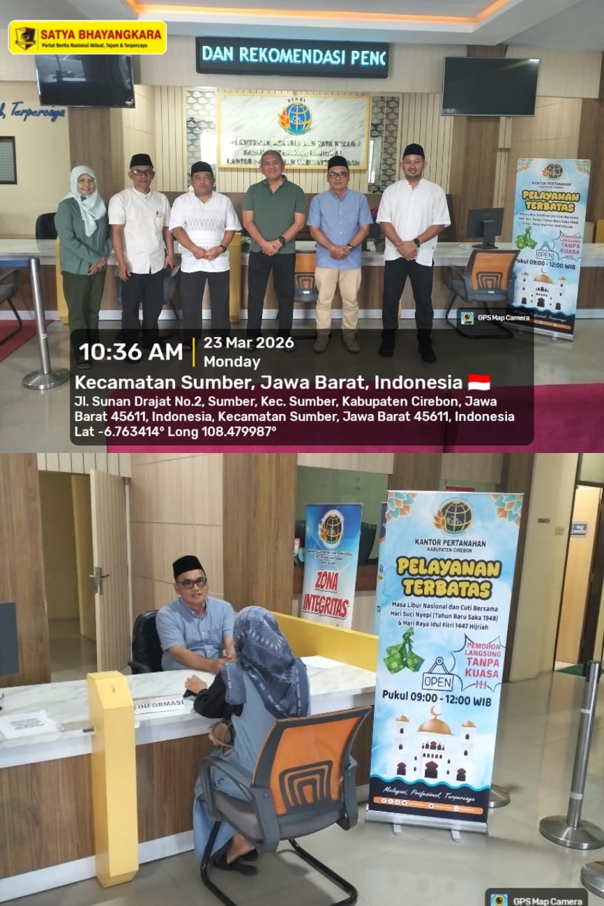 SATYA BHAYANGKARA | KABUPATEN CIREBON, – Monitoring pelaksanaan pelayanan terbatas oleh Kepala Biro Hukum Kementerian ATR/BPN ke Kantor Pertanahan (Kantah) dilakukan untuk memastikan layanan pertanahan tetap berjalan maksimal, aman, dan sesuai koridor hukum, terutama saat masa libur nasional atau cuti bersama