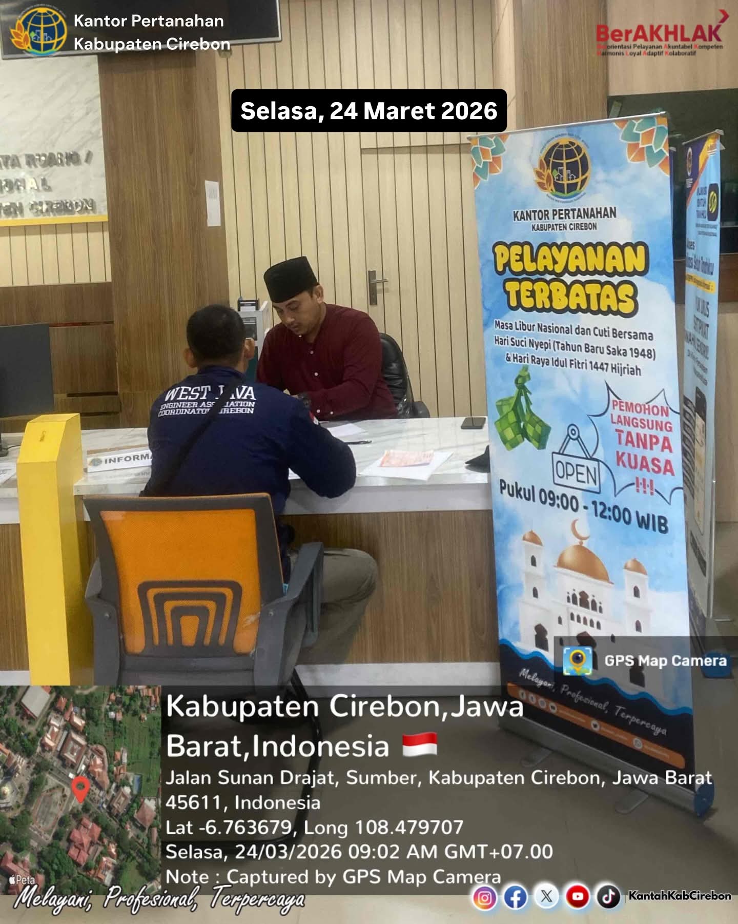 Bagi masyarakat kabupaten Cirebon maupun pemudik asal kabupaten Cirebon yang ingin mencari informasi layanan maupun pengurusan pertanahan, Kantah Kabupaten Cirebon tetap memberikan layanan terbatas pada 24 Maret 2026