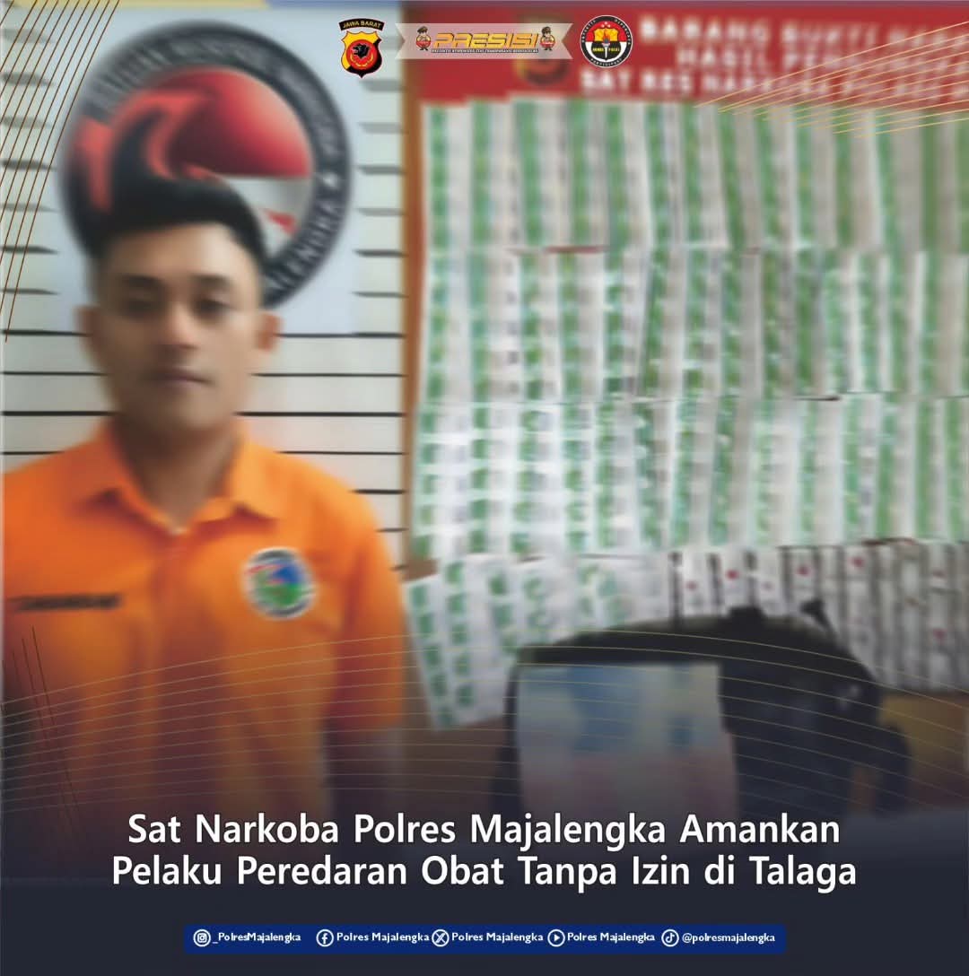 SATYA BHAYANGKARA | MAJALENGKA, – Satuan Reserse Narkoba Polres Majalengka yang dipimpin oleh IPDA Addi Junia Permana berhasil mengamankan seorang pelaku tindak pidana di bidang kesehatan berinisial GF, dalam sebuah operasi di wilayah Kabupaten Majalengka.