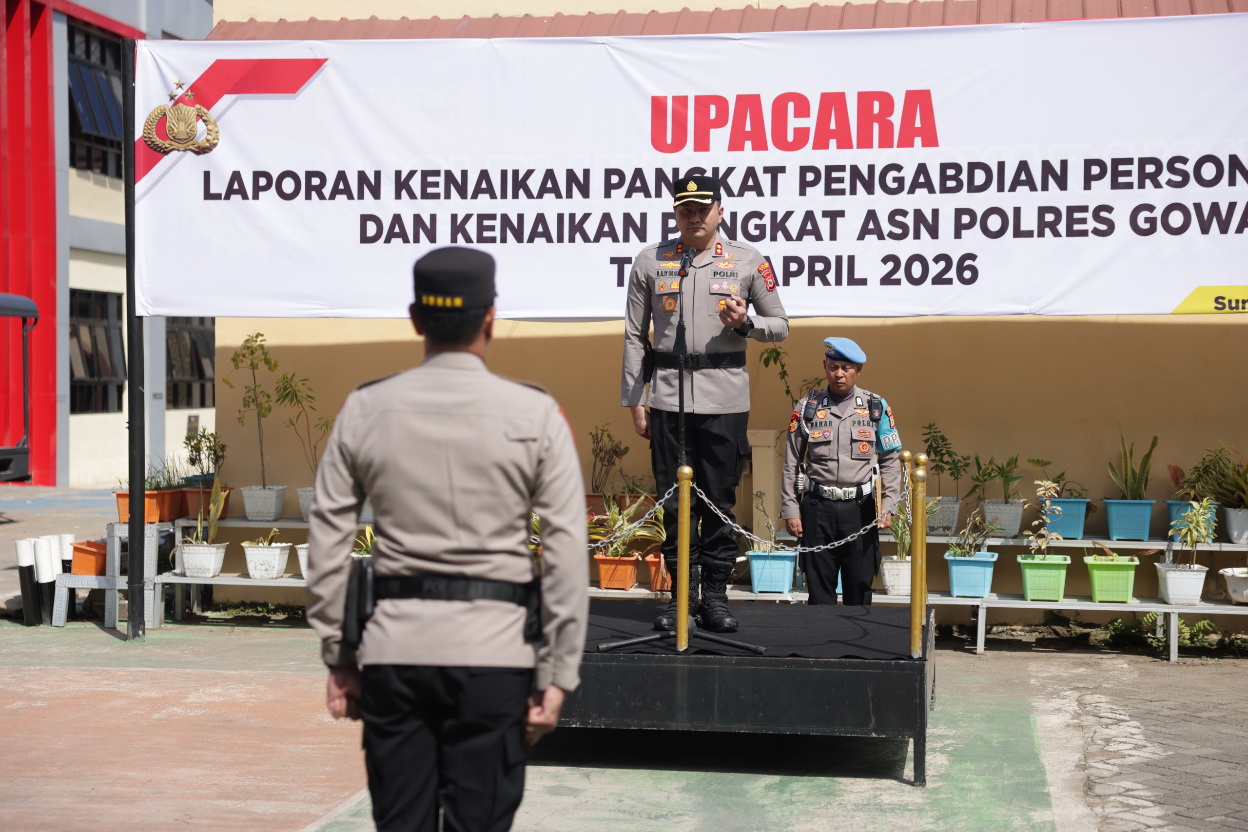 Upacara tersebut dihadiri para Kabag, Kasat, Kapolsek jajaran, Kasi, seluruh personel staf Polres Gowa, perwakilan Polsek Pallangga, pengurus Bhayangkari, serta ASN Polres Gowa.