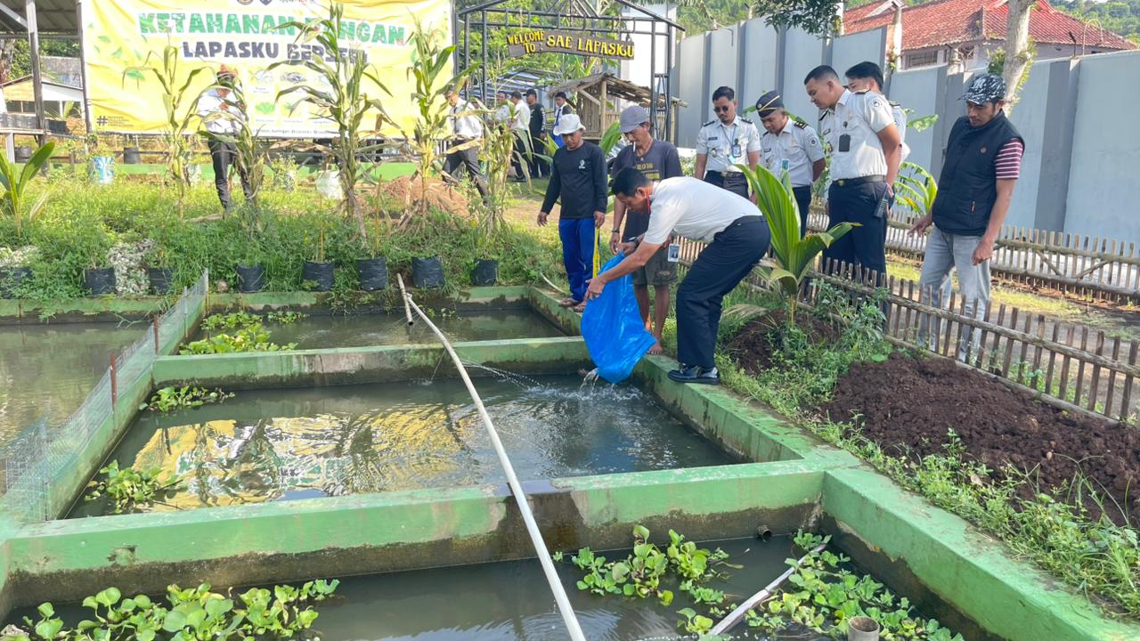 SATYA BHAYANGKARA | KUNINGAN, – Dalam upaya mendukung program pembinaan kemandirian sekaligus memperkuat ketahanan pangan, Lembaga Pemasyarakatan (Lapas) Kelas IIA Kuningan melaksanakan kegiatan penanaman benih ikan bawal di kolam Lahan SAE, Rabu (15/04).