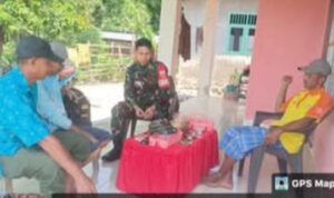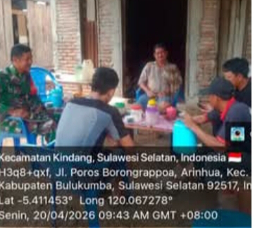 – Guna menciptakan situasi wilayah yang aman dan kondusif, Babinsa Koramil 1411-01/Gantarang, Sertu Masyhudin, melaksanakan kegiatan Komunikasi Sosial (Komsos) bersama warga binaannya di Desa Anrihua, Kecamatan Gantarang, Kabupaten Bulukumba. Senin, 20 April 2026.