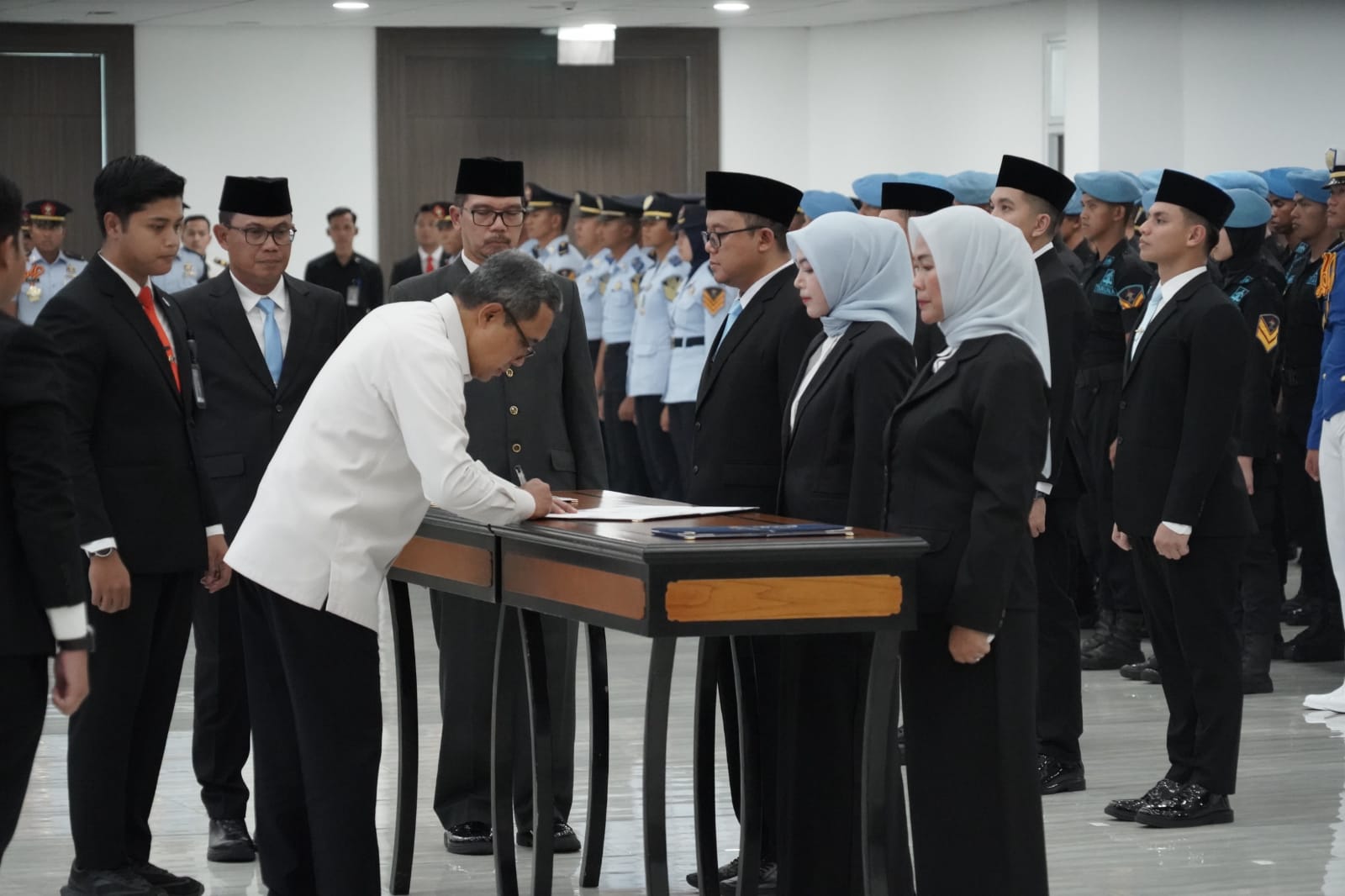 SATYA BHAYANGKARA | TANGERANG,- Selasa, 21 April 2026. Sekretaris Jenderal Kementerian Imigrasi dan Pemasyarakatan (Sekjen Kemenimipas), Asep Kurnia, secara resmi memimpin pelantikan dan pengambilan sumpah jabatan pejabat manajerial dan nonmanajerial di lingkungan Politeknik Imigrasi dan Pemasyarakatan Indonesia (Poltek Imipas) pada Senin (20/4/2026).