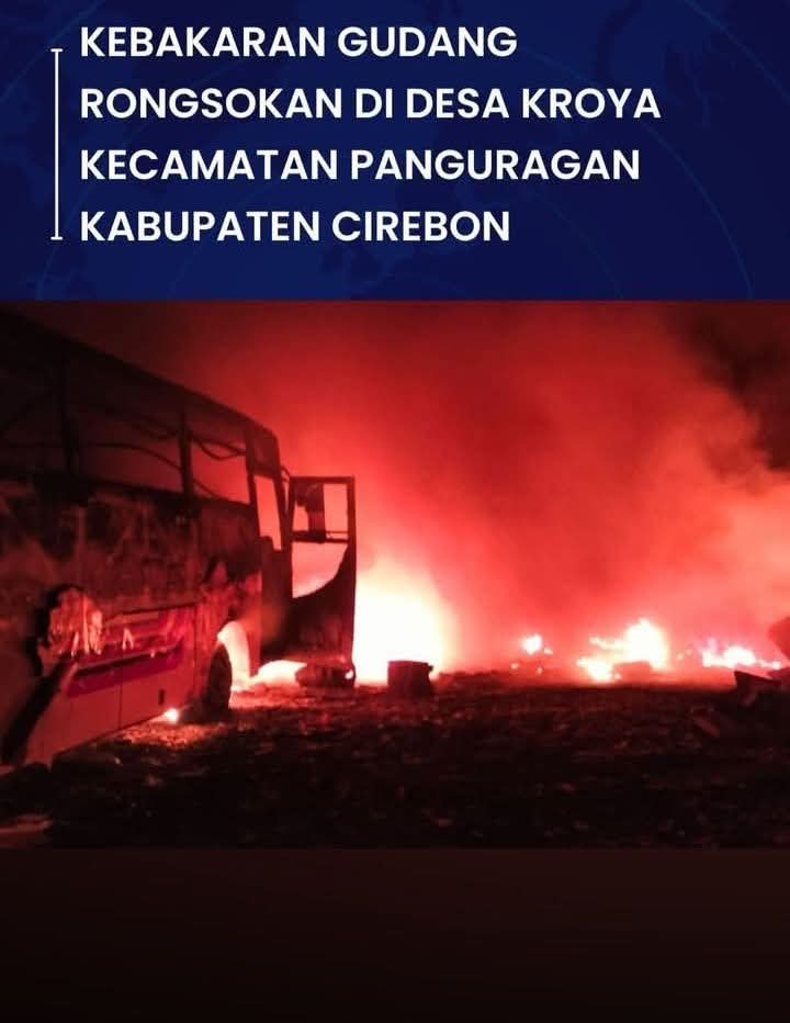 SATYA BHAYANGKARA | KABUPATEN CIREBON, – Kebakaran terjadi di tempat usaha penyimpanan barang bekas (rongsok) di Blok Bongklang, Desa Panguragan Lor, Kecamatan Panguragan, Selasa, 21 April 2026. Peristiwa tersebut diperkirakan terjadi sekitar pukul 18.35 WIB.