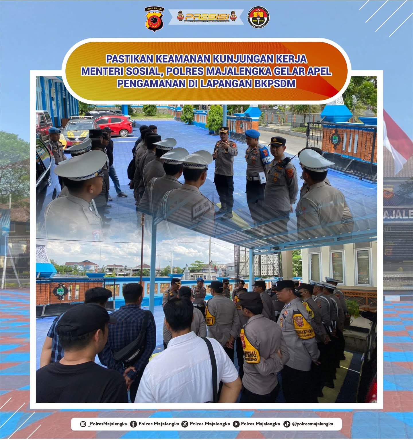 Kegiatan apel ini merupakan wujud kesiapsiagaan Polri dalam menjamin keamanan dan kelancaran agenda pejabat negara, yang dilaksanakan di bawah arahan dan pengawasan langsung Kapolres Majalengka AKBP Rita Suwadi, S.H., S.I.K., M.M.